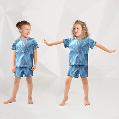ALAZA Blue Flower Blossom Pajamas Set Short Sleeve Cotton Sleepwear Summer Pjs 2 Piece 5-14Y 2