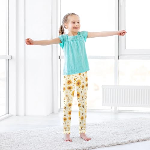 KLL Sunflowers Honey Bees Gnomes Toddler Girls' Legging Stretch High Waisted Athleisure Pants Running 6