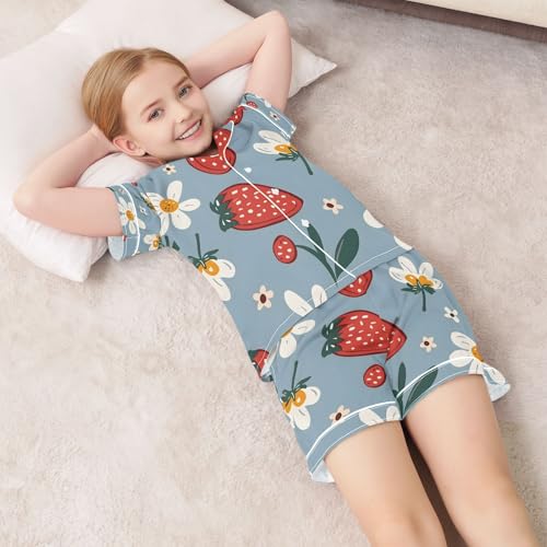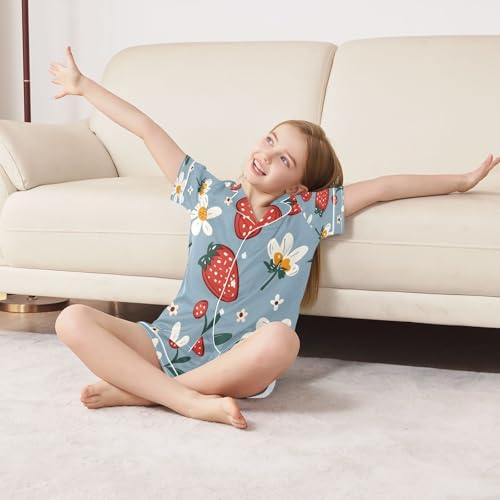senya Pajama Sets Silky Button Down Nightwear Sleepwear Size 5-14 Years Short Brush Cartoon Flowers 1