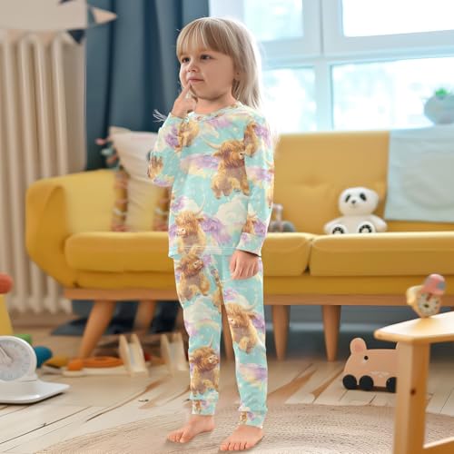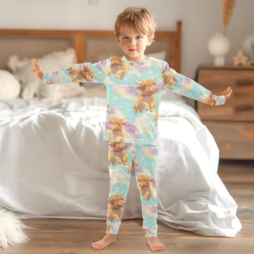 HOT ! senya Highland Cattle with Wings Pajamas Set Long Sleeve Soft Cotton Sleepwear 2 Piece