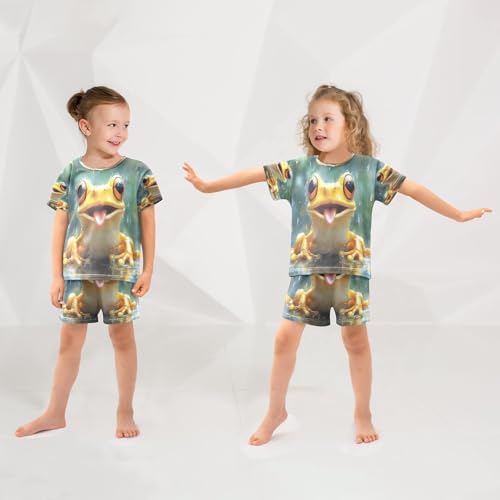 ALAZA Cute Frog Rain Pajamas Set Short Sleeve Cotton Sleepwear Summer Pjs 2 Piece 5-14Y 2