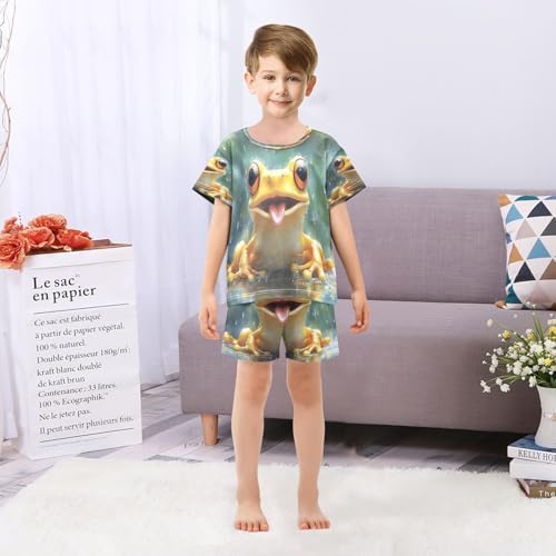 ALAZA Cute Frog Rain Pajamas Set Short Sleeve Cotton Sleepwear Summer Pjs 2 Piece 5-14Y 5