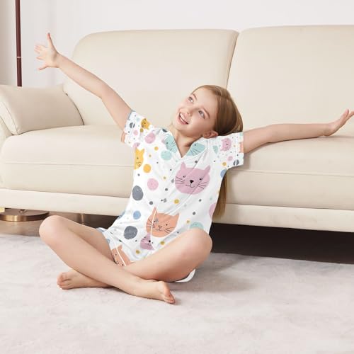 senya Cartoon Cat Color A Satin Summer Pajama Sets Silk Short Sleeve Button Down Sleepwear 6