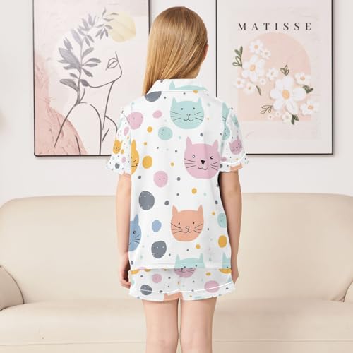 senya Cartoon Cat Color A Satin Summer Pajama Sets Silk Short Sleeve Button Down Sleepwear 3