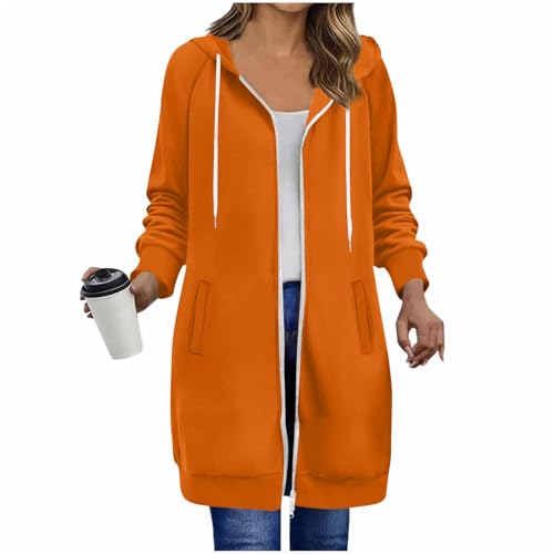 HOT ! Long Hoodies for Women Plus Size Zip up Drawstring Sweatshirt Coat Long Sleeve Casual Jacket Outwear with Pockets