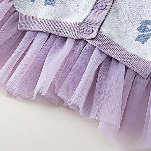 Toddler Girls Cardigan Sweater Long Sleeve Knitted Top with Tulle Mesh Patchwork, Button Down Kids Casual Fall Clothes 5