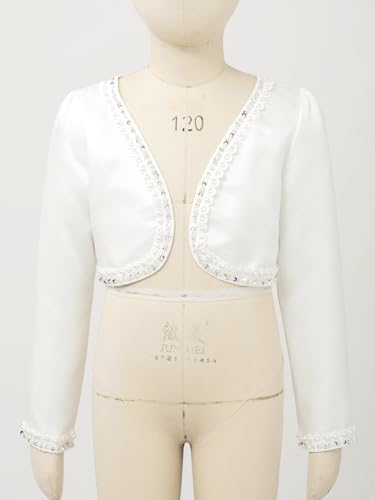 • Kids girls long sleeve open front bolero pearls sequins beaded shrug cardigan wedding event dress accessories