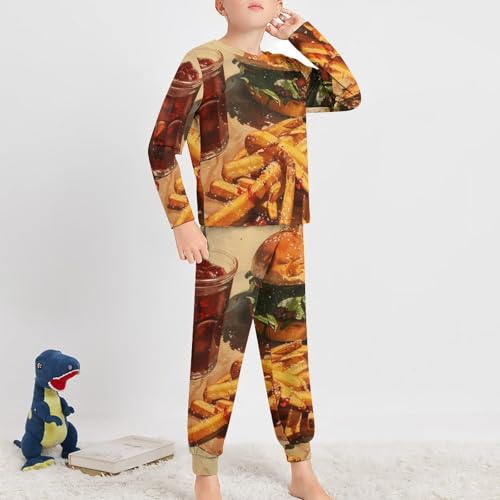 Hamburger And French FriesBoys Casual Comfort Pajamas, Long Sleeve Pajama Set120CM 1