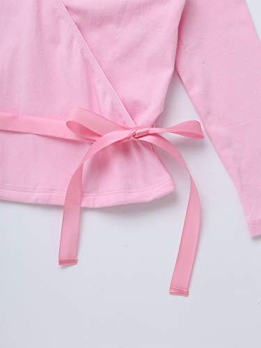 Girls Classic Ballet Dance Leoard Dress Wrap Top Cardigan Sweater Long Sleeve Cover ups Pink 4 7