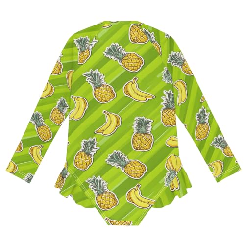 ALAZA Toddler Swimsuit Girl Bathing Suit Swimwear Rash Guard Banana Pineapple Green Long Sleeve 3T 6