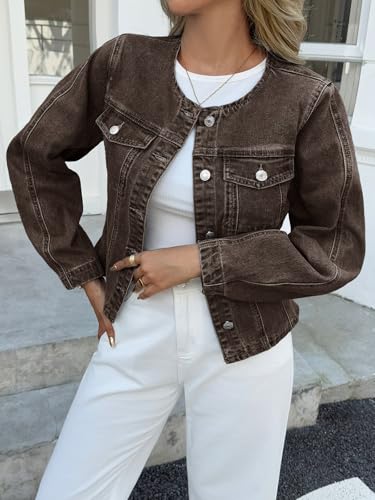 Tankaneo Womens Cropped Jean Jacket Trendy Crewneck Button Down Short Denim Jacket Y2k Slim Fit Casual Shacket 5