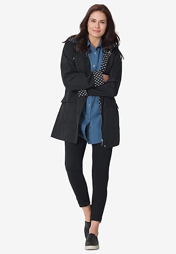 • Our plus size rain jacket is perfect for multi-season comfort. The fun dot trim will make you the best dressed even in the rain.