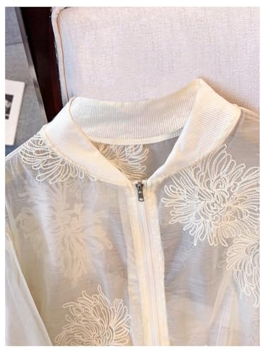 GORGLITTER Women's Light Jackets Floral Embroidery Zip Up Bomber Jackets Sheer Casual Long Sleeve Coats 3