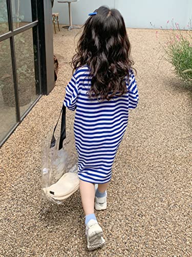 Kids Girls Dress 1/2 Sleeve Stripes Print Pullover Toddler Casual Crew Neck Sweater Loose Blouse Top 6