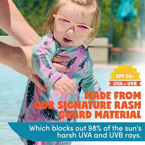 • ULTRA COMFORT AND EASY CARE: Raglan cut sleeves for enhanced mobility and flatlock seams throughout the bathing suit provide for ultimate comfort and durability of the toddler swimsuit for boys giving full, free range of motion. Simply machine wash, line dry and your baby is ready to enjoy another day protected from the sun in this infant swimsuit.