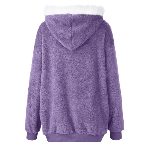 HOT ! Winter Coats for Women Fuzzy Fleece Sherpa Jacket Zip Up Solid Fuzzy Hooded Cardigan Outerwear with Pocket