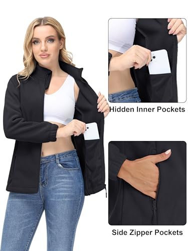 MAGCOMSEN Women's Fleece Jacket Zip Up Coat Lightweight Soft Warm Long Sleeve Jackets with Pockets for Winter 2