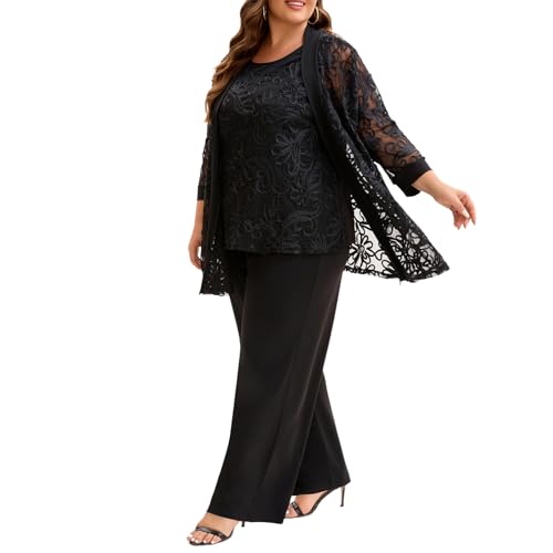 Plus Size 3 Piece Floral Embroidered Pantsuit Set Women Mother of Bride Wedding Guest Formal Evening Cocktail Party Attire 3