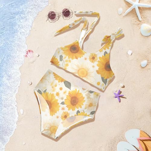 Sunflowers Pattern Artistic Girls' Two Piece Kids Bikini Set Scoop Neck Swimsuit Swimwear Adjustable Shoulder Strap 2