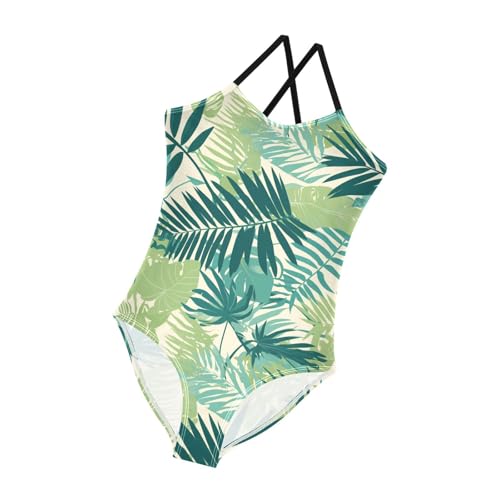 Tropical Palm Leaves Fern Leaf Kids Girls 1 Piece Bathing Suit Beach Swimming Suits with Adjustable Straps Quick-Dry 1