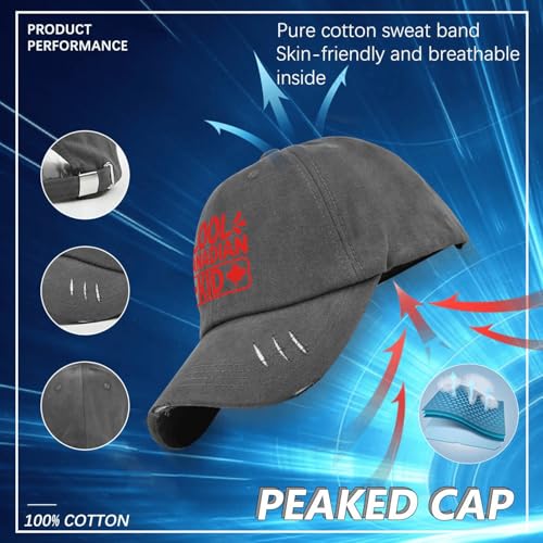 Cool Canadians Kid Hats for Mens Washed Distressed Baseball Caps Fashion Washed Running Hats Breathable Dark Grey 1