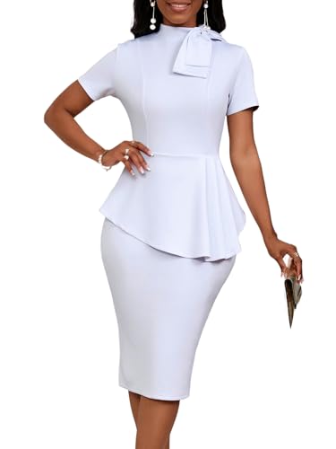 More information about WanMem Women Formal Bodycon Peplum Cocktail Dress Short Sleeve Bow Ruffle Pencil Party Midi Dresses