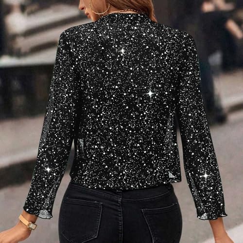 HOT ! Womens Sequin Jacket Sparkly Glitter Open Front Cropped Blazer Lightweight Shrug Jacket for Evening Party Cocktail