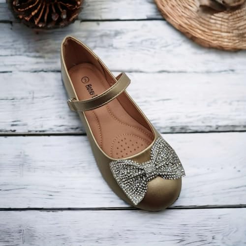 HOT ! Jazamé Girls' Embellished Bow Round Toe Mary Jane Dress Shoes, Ballerina Flats