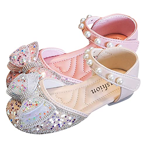 Little Kid Girls Dress Pumps Sequins Princess Low Heels Mary Jane Party Dance Shoes Rhinestones Bowknot Sandals 6