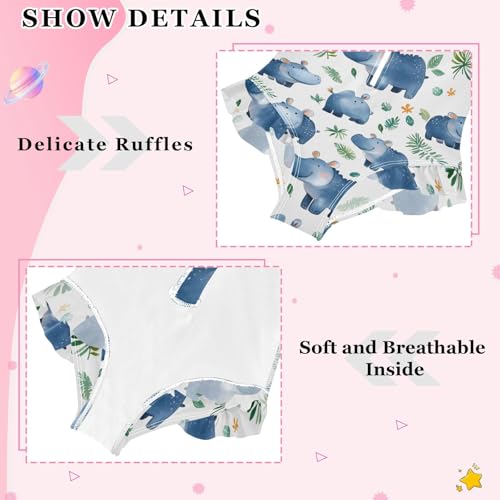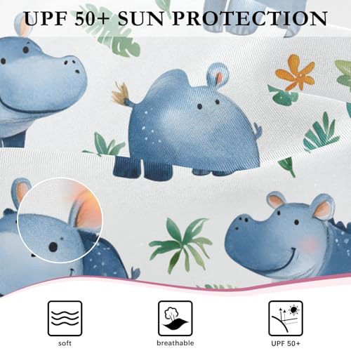 Cute Hippo Leaves Girls Long Sleeve Swimsuit Rash Guard One Piece Bathing Suits Zipper 3-12T 7