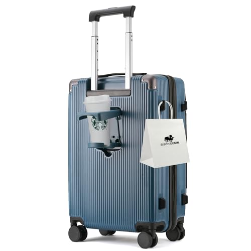More information about BISON DENIM Carry On Luggage Expandable PC Hard Shell Suitcase with Spinner Wheels and Cup Holder, TSA-approved Lock and USB Port 20-Inch