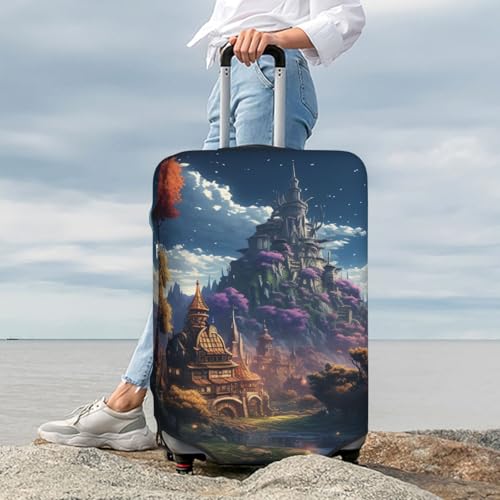 HOT ! Travel Luggage Cover Fantasy Town Suitcase Protector Elastic Washable Stretch Suitcase Protector Anti-Scratch Travel Suitcase Cover Fit 18-32 Inch Luggage