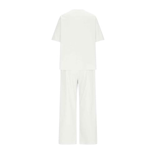 Oplxuo 2 Piece Lounge Set Women Cotton Linen Short Sleeve Button Tee Shirt Wide Leg Pants Casual Summer Loungewear Pants Sets 2
