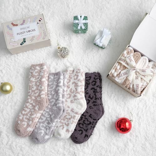 Snuggle Sac Warm Fuzzy Socks Christmas Socks for Women Super Soft Cozy Winter Slipper Socks Set Birthday Gifts For Her 4Pairs 4