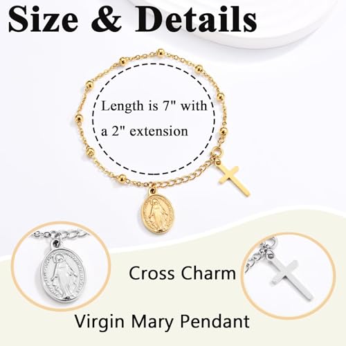 • First Communion Gifts for Girls: The dainty catholic gifts link bracelet features with delicate and pretty Catholic Virgin Mary medal and cross charm. Wearing it as a symbol of your faith or as a chic match on your look