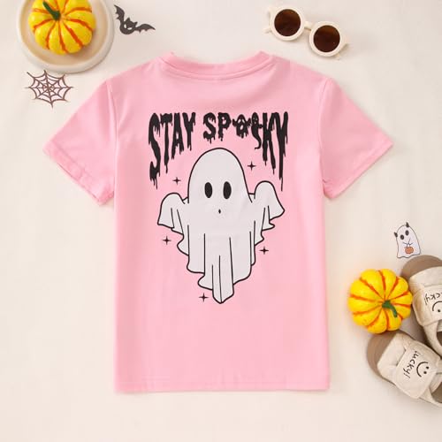 KEKEMI Kid Boy Girl Halloween Shirts Stay Spooky Ghost T-Shirt Funny Ghost Spooky Season Outfit Fall Short Sleeve Tees Tops 6