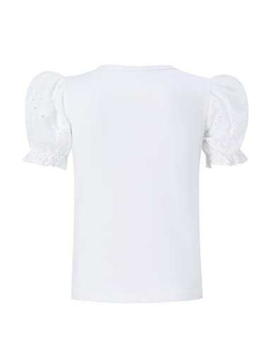 Girls Blouse Ruffle Puff Short Hollow Out Sleeve T-Shirt Round Neck Solid Casual Tops 3-12 Years 6