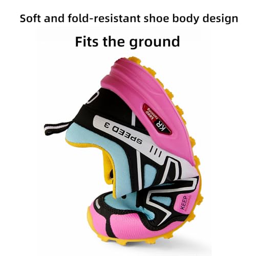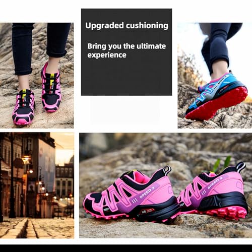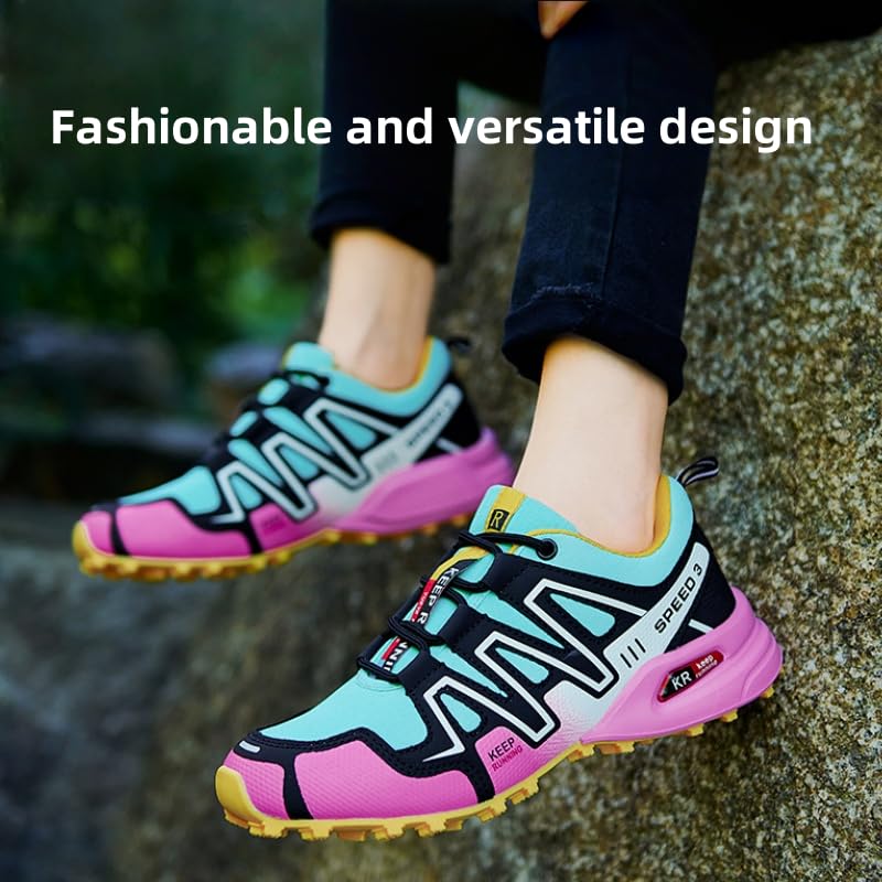 • VERSATILE DESIGN: Multi-color trail running shoes featuring eye-catching turquoise, pink, and black color scheme with contrasting yellow sole for style and visibility