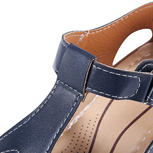 PU Leather Women's Orthopedic Anti-Slip Vintage Cross Belt Wedge Gladiator Outdoor Hollow Out Sandals 7