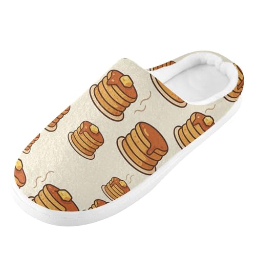 JUNZAN Cartoon Pancake Butter Syrup Beige Cotton Slippers for Men Lightweight Memory Foam Travel Slippers for Hotel Funny Presents 6-7 5