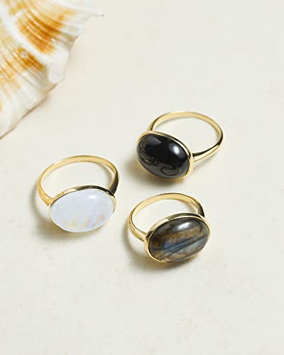 More information about YoTreasure 14K Gold Over 925 Silver Rainbow Moonstone Labradorite Black Onyx Oval Shaped Ring Jewelry