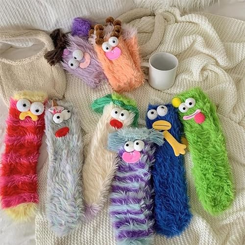 • 1.Material Soft & Comfortable: These fuzzy socks are made of high quality polyester to ensure that they feel soft and comfortable against the skin.The fluffy texture is cozy and comfortable, perfect for hanging out at home or even wearing to bed.