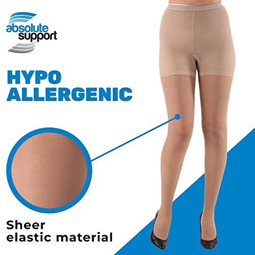 ABSOLUTE SUPPORT Made in USA - Sheer Compression Firm Pantyhose 20-30mmHg for Women Circulation - Sheer Compression Support Stockings Hose for Ladies - Hi Waist Tights - Black & Nude, Medium 3