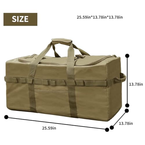 Large Military Duffle Bag Tactical Camping Storage Utility Tote Bag Camping Kitchen Organizer with Deployment Cargo Bag Travel Sports Equipment (Khaki, Medium 25.59"x13.78"x13.78") 1